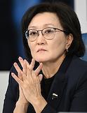 Пресс-конференция, посвященная представлению программы единого кандидата на должность президента России от партии "Новые люди" и "Партии роста" Владислава Даванкова, в пресс-центре ТАСС. Заместитель председателя комитета Государственной думе (ГД) России по государственному строительству и законодательству Сардана Авксентьева во время пресс-конференции.