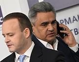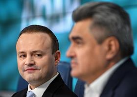 Пресс-конференция, посвященная представлению программы единого кандидата на должность президента России от партии "Новые люди" и "Партии роста" Владислава Даванкова, в пресс-центре ТАСС. Кандидат на должность президента России Владислав Даванков (слева) и руководитель фракции партии "Новые люди" в Государственной думе России Алексей Нечаев (справа) после пресс-конференции.