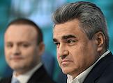 Пресс-конференция, посвященная представлению программы единого кандидата на должность президента России от партии "Новые люди" и "Партии роста" Владислава Даванкова, в пресс-центре ТАСС. Кандидат на должность президента России Владислав Даванков (слева) и руководитель фракции партии "Новые люди" в Государственной думе России Алексей Нечаев (справа) во время пресс-конференции.