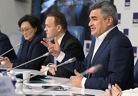 Пресс-конференция, посвященная представлению программы единого кандидата на должность президента России от партии "Новые люди" и "Партии роста" Владислава Даванкова, в пресс-центре ТАСС. Заместитель председателя "Партии Роста" Виктор Звагельский во время пресс-конференции.