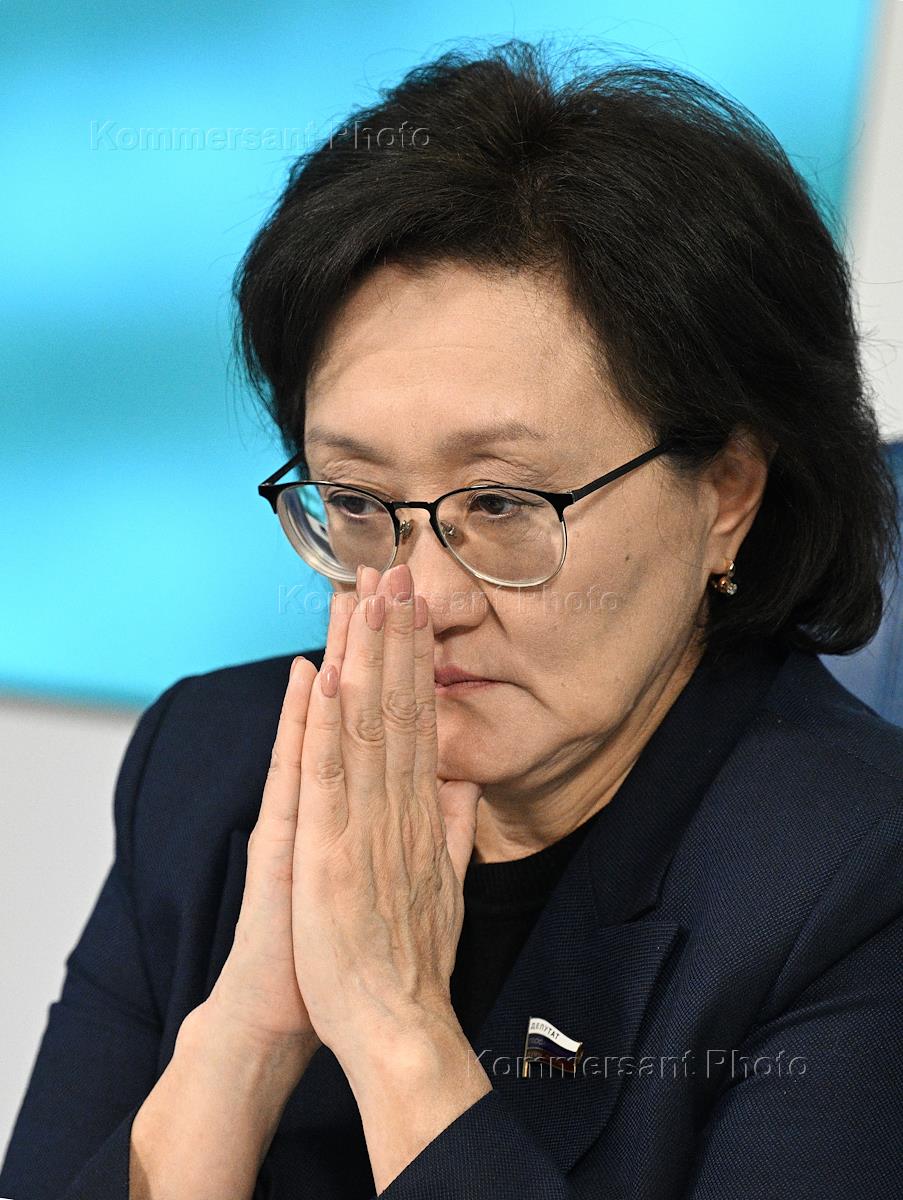 Пресс-конференция, посвященная представлению программы единого кандидата на должность президента России от партии "Новые люди" и "Партии роста" Владислава Даванкова, в пресс-центре ТАСС. Заместитель председателя комитета Государственной думе (ГД) России по государственному строительству и законодательству Сардана Авксентьева во время пресс-конференции.