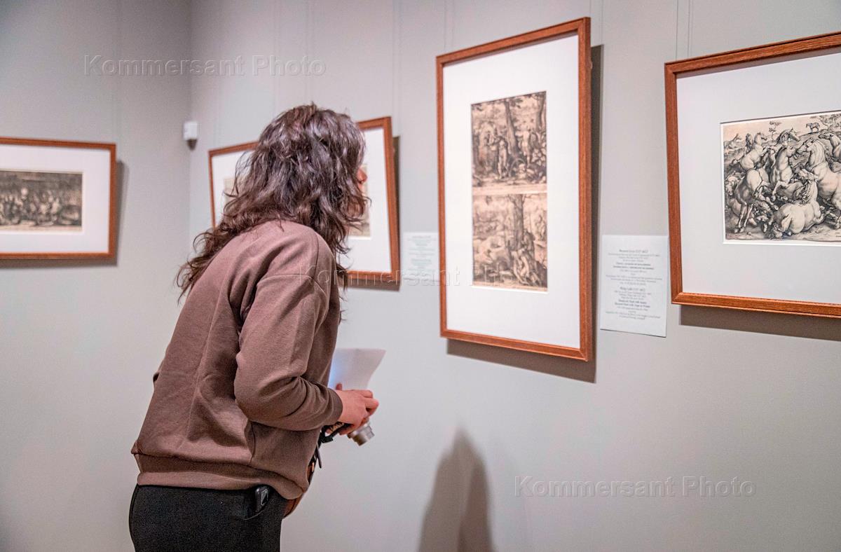 Пресс-показ выставки "Мастера старонидерландской гравюры" в Государственном Эрмитаже. Посетитель на выставке.