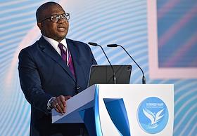 Учредительный форум неформального международного движения "Форум сторонников борьбы с современными практиками неоколониализма" – "За свободу наций!", организованный партией "Единая Россия" в Доме Союзов. Генеральный секретарь Африканского национального конгресса Фикиле Мбалула во время выступления на форуме.