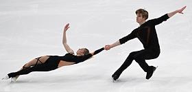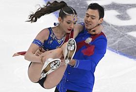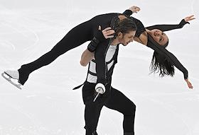 II Всероссийская Спартакиада по зимним видам спорта среди сильнейших спортсменов 2024 года. Фигурное катание в Ледовом дворце "Металлург". Танцы на льду. Ритм танец. Фигуристы Елизавета Шанаева и Павел Дрозд во время выступления.
