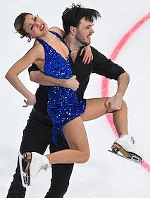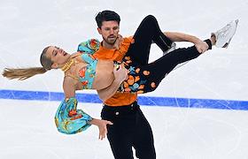 II Всероссийская Спартакиада по зимним видам спорта среди сильнейших спортсменов 2024 года. Фигурное катание в Ледовом дворце "Металлург". Танцы на льду. Ритм танец. Фигуристы Александра Степанова и Иван Букин во время выступления.