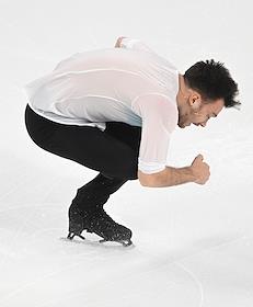 II Всероссийская Спартакиада по зимним видам спорта. Соревнования по фигурному катанию в ЛД "Металлург". Фигурист Дмитрий Алиев во время выступления с короткой программой в мужском одиночном катании.