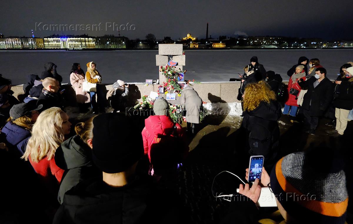 Ситуация возле стихийного мемориала в память об Алексее Навальном на Воскресенской набережной.