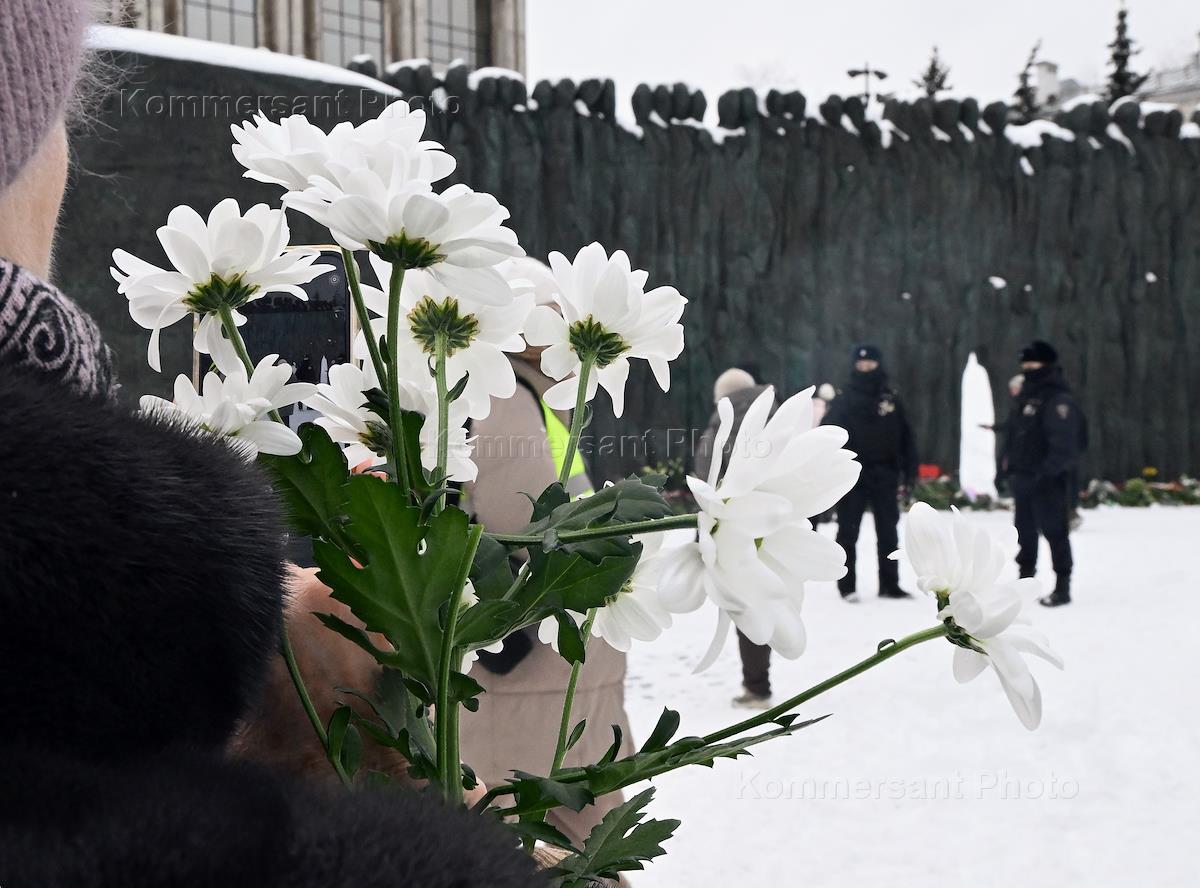 Ситуация у памятника жертвам политических репрессий "Стена скорби" в связи со смертью Алексея Навального.