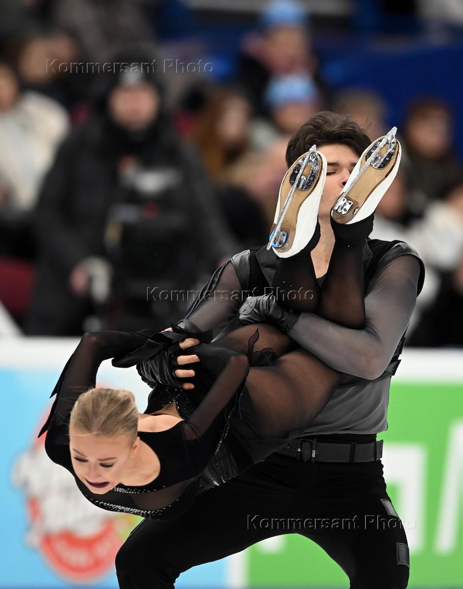 II Всероссийская Спартакиада по зимним видам спорта. Фигурное катание в Ледовом дворце (ЛД) "Металлург". Танцы на льду. Произвольный танец. Фигуристы Варвара Жданова и Тимур Бабаев-Смирнов во время выступления.