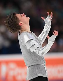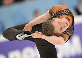 II Всероссийская Спартакиада по зимним видам спорта. Фигурное катание в Ледовом дворце (ЛД) "Металлург". Мужчины, произвольная программа. Фигурист Марк Кондратюк во время выступления.