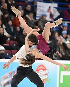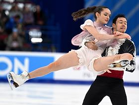 II Всероссийская Спартакиада по зимним видам спорта. Фигурное катание в Ледовом дворце (ЛД) "Металлург". Танцы на льду. Произвольный танец. Фигуристы Елизавета Шанаева и Павел Дрозд во время выступления.