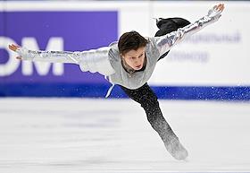 II Всероссийская Спартакиада по зимним видам спорта. Фигурное катание в Ледовом дворце (ЛД) "Металлург". Мужчины, произвольная программа. Фигурист Матвей Ветлугин во время выступления.