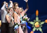 II Всероссийская Спартакиада по зимним видам спорта. Фигурное катание в Ледовом дворце (ЛД) "Металлург". Слева направо: фигуристы Елизавета Худайбердиева и Егор Базин, Александра Степанова и Иван Букин, Ирина Хавронина и Девид Нарижный во время церемонии награждения.