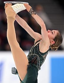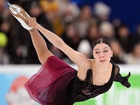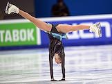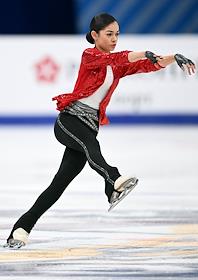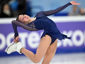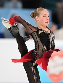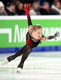 II Всероссийская Спартакиада по зимним видам спорта. Фигурное катание в Ледовом дворце (ЛД) "Металлург". Женщины. Короткая программа. Фигуристка Аделия Петросян во время выступления.