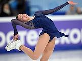II Всероссийская Спартакиада по зимним видам спорта. Фигурное катание в Ледовом дворце (ЛД) "Металлург". Женщины. Короткая программа. Фигуристка Алина Горбачева во время выступления.