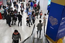 "Форум национальных достижений: образование" в рамках выставки-форума "Россия" на ВДНХ. Пленарная сессия "О ключевых результатах и достижениях науки и высшего образования". Жанровая фотография. Посетители на выставке-форуме.