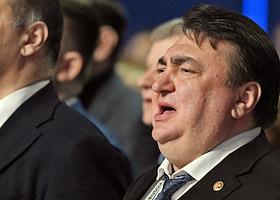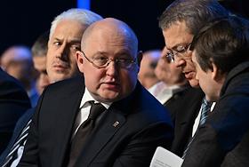 "Форум национальных достижений: образование" в рамках выставки-форума "Россия" на ВДНХ. Пленарная сессия "О ключевых результатах и достижениях науки и высшего образования". Председатель правительства Республики Ингушетия Владимир Сластенин во время пленарной сессии.