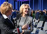 "Форум национальных достижений: образование" в рамках выставки-форума "Россия" на ВДНХ. Пленарная сессия "О ключевых результатах и достижениях науки и высшего образования". Заместитель председателя Правительства России Татьяна Голикова (справа) во время пленарной сессии.