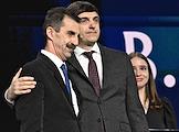 "Форум национальных достижений: образование" в рамках выставки-форума "Россия" на ВДНХ. Пленарная сессия "О ключевых результатах и достижениях науки и высшего образования". Губернатор Севастополя Михаил Развожаев (справа) и председатель правительства Чеченской республики Муслим Хучиев (слева) во время пленарной сессии.
