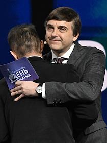 "Форум национальных достижений: образование" в рамках выставки-форума "Россия" на ВДНХ. Пленарная сессия "О ключевых результатах и достижениях науки и высшего образования". Министр просвещения России Сергей Кравцов (справа) во время пленарной сессии.