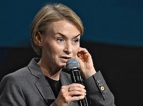 "Форум национальных достижений: образование" в рамках выставки-форума "Россия" на ВДНХ. Пленарная сессия "О ключевых результатах и достижениях науки и высшего образования". Директор по управлению персоналом госкорпорации "Ростех" Юлия Цветкова во время пленарной сессии.