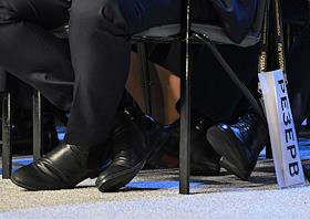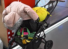 "Форум национальных достижений: образование" в рамках выставки-форума "Россия" на ВДНХ. Пленарная сессия "О ключевых результатах и достижениях науки и высшего образования". Жанровая фотография. Детская коляска с вещами на выставке-форуме.