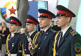 "Форум национальных достижений: образование" в рамках выставки-форума "Россия" на ВДНХ. Пленарная сессия "О ключевых результатах и достижениях науки и высшего образования". Курсанты Луганского кадетского корпуса во время пленарной сессии.