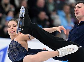 II Всероссийская Спартакиада по зимним видам спорта. Соревнования по фигурному катанию в ЛД "Металлург". Фигуристы Елизавета Осокина и Артем Грицаенко во время исполнения произвольной программы в парном катании.