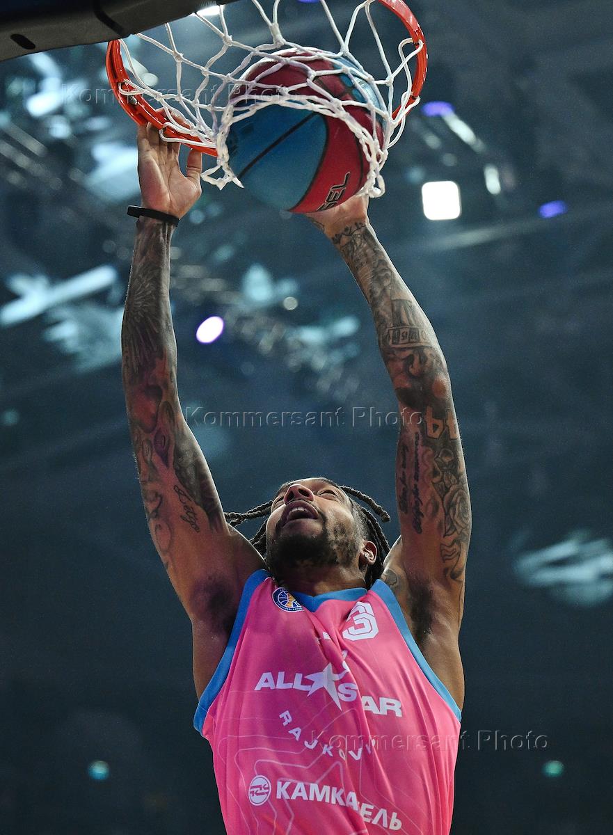 Матч звезд Единой Лиги ВТБ по баскетболу на стадионе "ВТБ Арена". Игрок команды Райковича Девон Акун-Пёрселл во время матча.