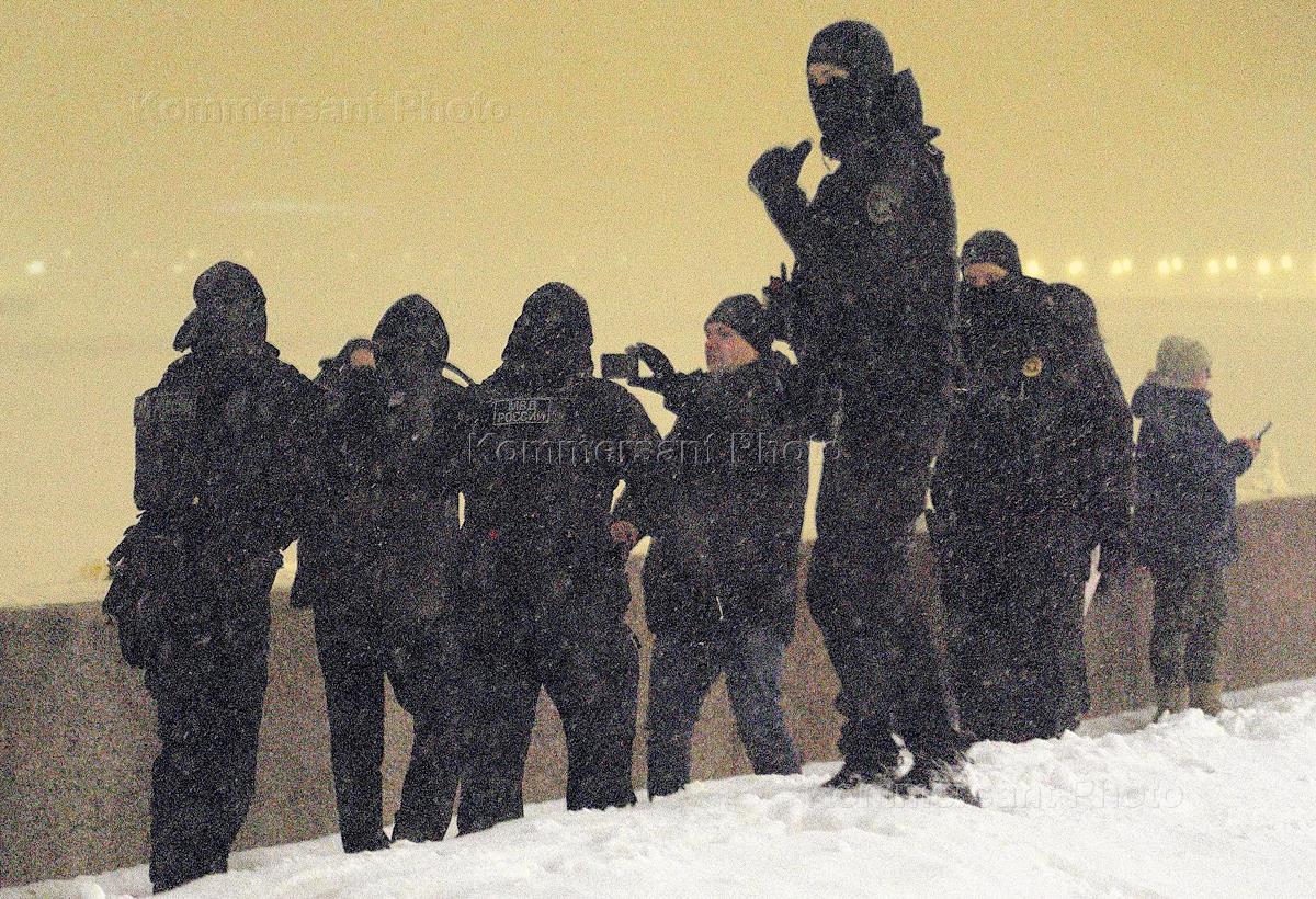 Laying flowers at the monument to victims of political repression on Voskresenskaya Embankment on the day of the death of opposition leader Alexei Navalny. Police officers detain participants in a spontaneous meeting in memory of Alexei Navalny on Voskresenskaya embankment.