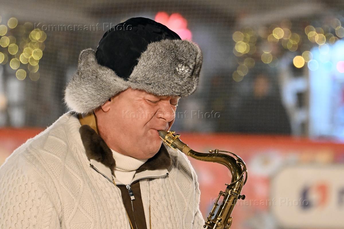Празднование 25-летия Московского джазового оркестра под управлением Игоря Бутмана на ГУМ-Катке. Художественный руководитель Московского джазового оркестра Игорь Бутман (справа) на мероприятии.