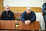 Заседание по делу сотрудников ЧОПа Сергея Гребенюкова и Романа Московского о разбойном нападении и воспрепятствовании законной деятельности журналиста фотокорреспондента газеты "Коммерсантъ" Анатолия Жданова в Дорогомиловском районном суде. Обвиняемые по делу, сотрудники ЧОПа Сергей Гребенюков (второй слева) и Роман Московский (слева) во время заседания суда.
