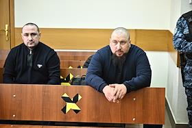 Заседание по делу по обвинению сотрудников ЧОПа Сергея Гребенюкова и Романа Московского по делу о разбойном нападении и воспрепятствовании законной деятельности журналиста фотокорреспондента газеты "Коммерсантъ" Анатолия Жданова в Дорогомиловском районном суде. Обвиняемые по делу, сотрудники ЧОПа Сергей Гребенюков (справа) и Роман Московский (слева) во время заседания суда.