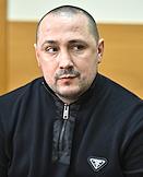 Заседание по делу по обвинению сотрудников ЧОПа Сергея Гребенюкова и Романа Московского по делу о разбойном нападении и воспрепятствовании законной деятельности журналиста фотокорреспондента газеты "Коммерсантъ" Анатолия Жданова в Дорогомиловском районном суде. Обвиняемый по делу, сотрудник ЧОПа Сергей Гребенюков во время заседания суда.