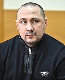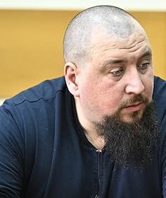 Заседание по делу по обвинению сотрудников ЧОПа Сергея Гребенюкова и Романа Московского по делу о разбойном нападении и воспрепятствовании законной деятельности журналиста фотокорреспондента газеты "Коммерсантъ" Анатолия Жданова в Дорогомиловском районном суде. Обвиняемый по делу, сотрудник ЧОПа Роман Московский во время заседания суда.