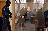 Заседание по делу сотрудников ЧОПа Сергея Гребенюкова и Романа Московского о разбойном нападении и воспрепятствовании законной деятельности журналиста фотокорреспондента газеты "Коммерсантъ" Анатолия Жданова в Дорогомиловском районном суде. Обвиняемые по делу, сотрудники ЧОПа Сергей Гребенюков (справа) и Роман Московский (в центре) во время заседания суда.