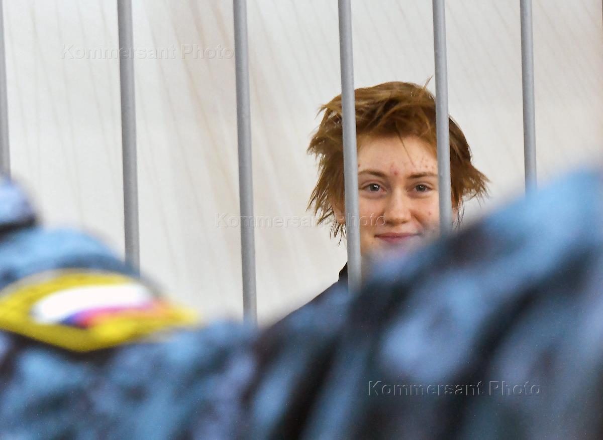 Определение меры пресечения Дарье Козыревой, обвиняемой в повторной дискредитации армии, в Петроградском районном суде. Обвиняемая Дарья Козырева во время заседания суда.