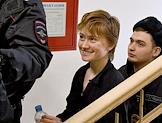 Определение меры пресечения Дарье Козыревой, обвиняемой в повторной дискредитации армии, в Петроградском районном суде. Обвиняемая Дарья Козырева перед началом заседания суда.