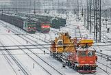 Грузовые перевозки на железной дороге. Жанровая фотография. Снегоборьба на железнодорожной станции Тайга.