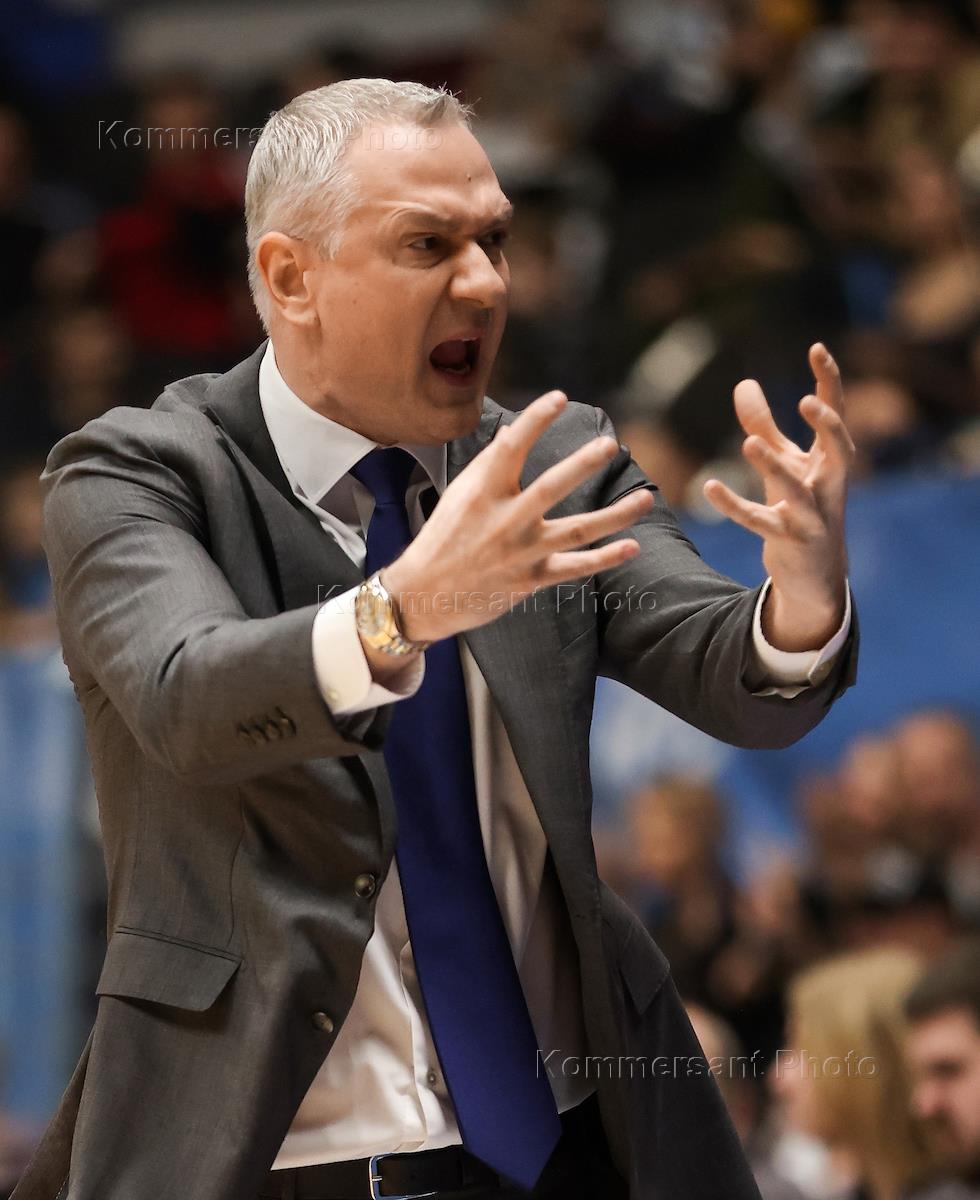 VTB United Basketball League 2023/2024. The match between the teams "Zenit" (St. Petersburg) - CSKA (Moscow) at the Arena concert and sports complex. CSKA team head coach Emil Rajkovic during the match.
