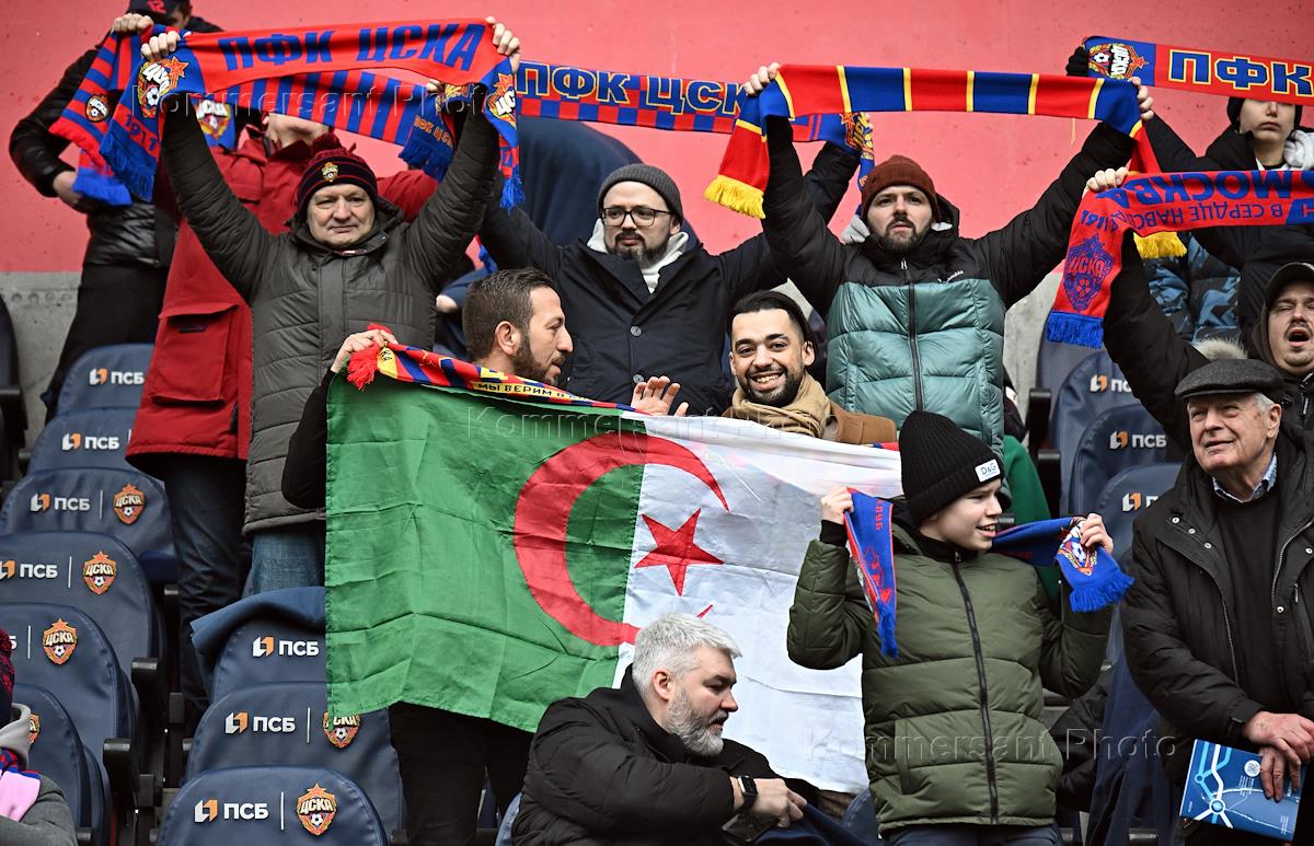 Russian Premier League (RPL). MIR - Russian Football Championship 2023/2024. 19th round. Match between the teams CSKA (Moscow) - Orenburg (Orenburg) at the VEB Arena stadium. Fans in the spectator stand during the match.