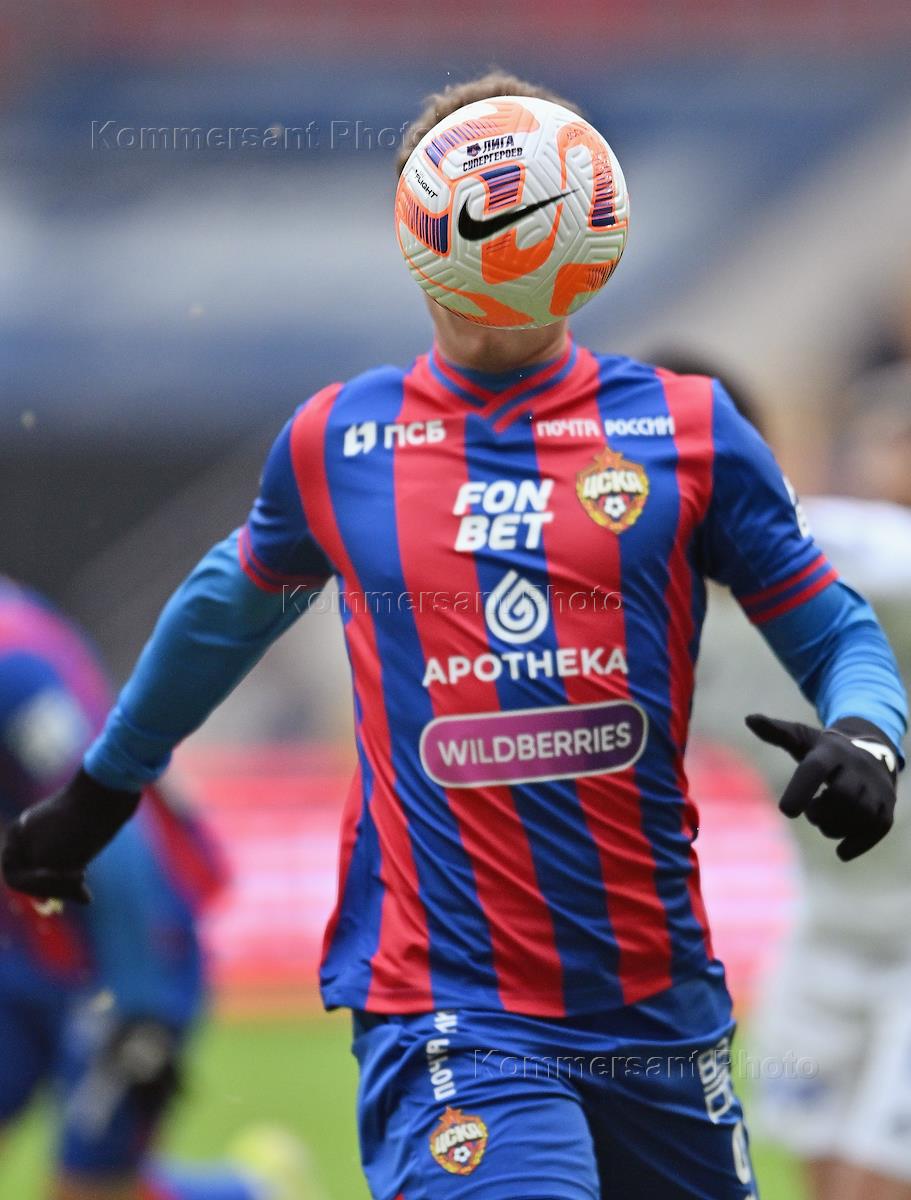 Russian Premier League (RPL). MIR - Russian Football Championship 2023/2024. 19th round. Match between the teams CSKA (Moscow) - Orenburg (Orenburg) at the VEB Arena stadium. CSKA team player Fedor Chalov during the match.