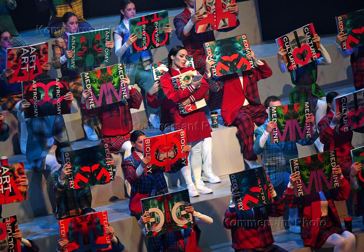 Всемирный фестиваль молодежи 2024 на Федеральной территории "Сириус". Церемония открытия во Дворце спорта "Большой". Участники во время церемонии.