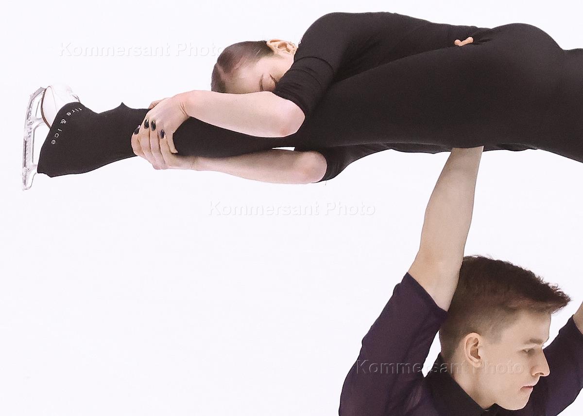 Tinkoff - Channel One Figure Skating Cup 2024 at the Yubileiny Ice Palace. Dancing on Ice. Rhythm dance. Figure skaters Sofia Shevchenko and Andrey Yezhlov during a performance.