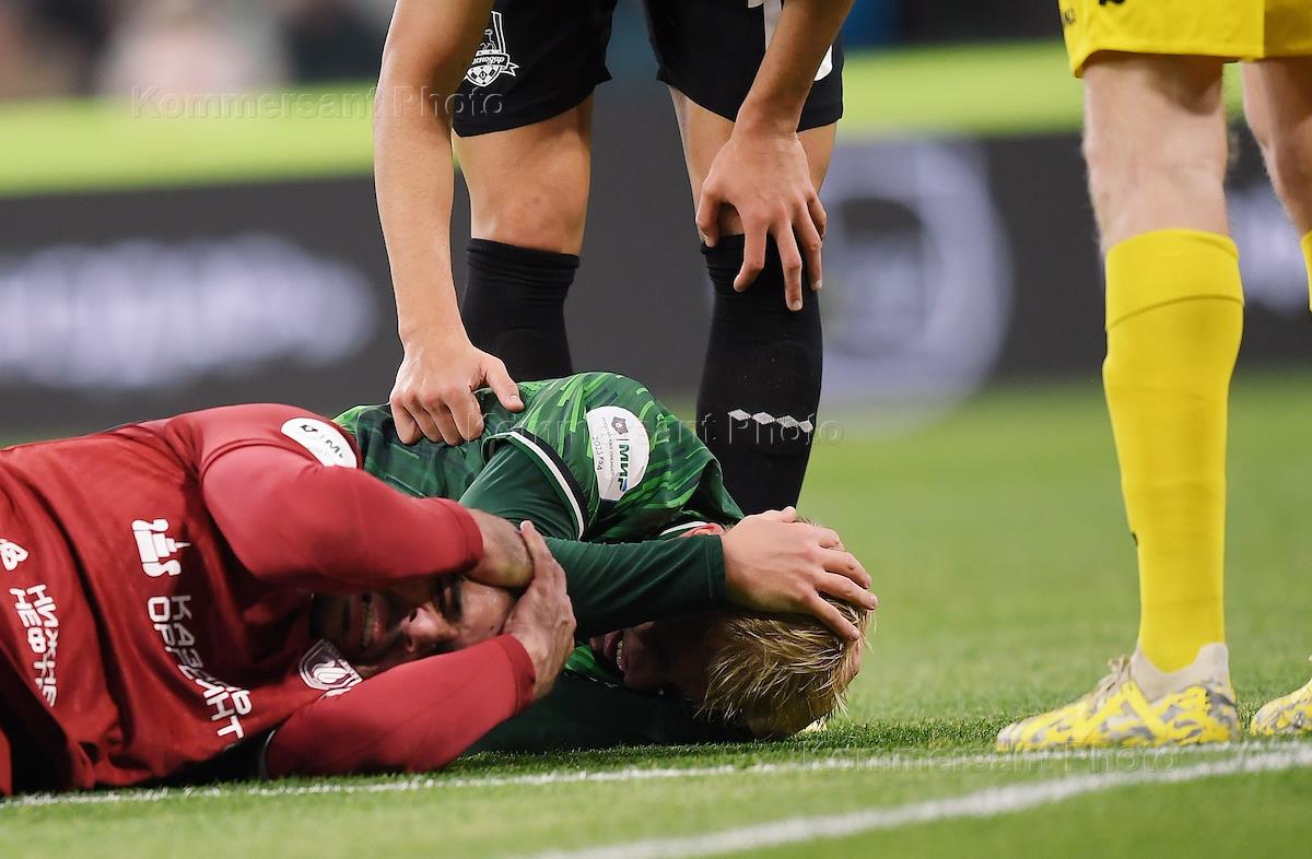 Russian Premier League (RPL). MIR - Russian Football Championship 2023/2024. 19th round. Match between the teams "Krasnodar" (Krasnodar) - "Rubin" (Kazan) at the stadium "FC Krasnodar". Player of the "Krasnodar" team Vitor Tormina (left) and player of the Rubin team Mirlind Daku (right) during the match.