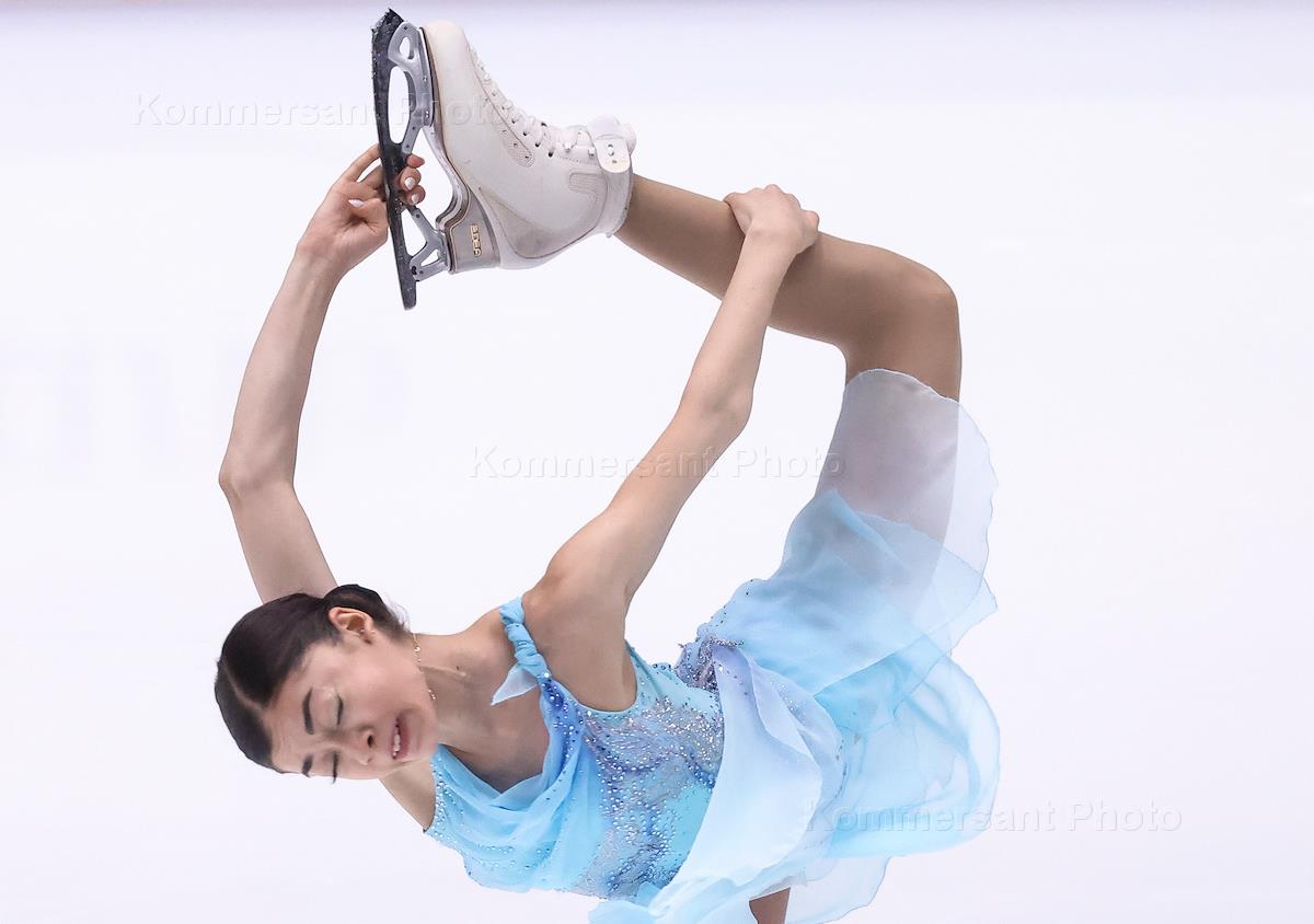 Тинькофф - Кубок Первого канала по фигурному катанию 2024 в ледовом дворце "Юбилейный". Женщины. Произвольная программа. Фигуристка Аделия Петросян (команда "Синие") во время выступления.