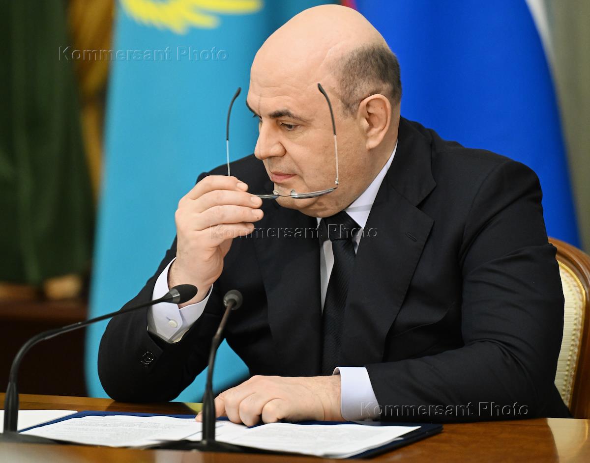 Председатель правительства России Михаил Мишустин перед началом встречи с премьер-министром Казахстана Олжасом Бектеновым в Доме правительства России.