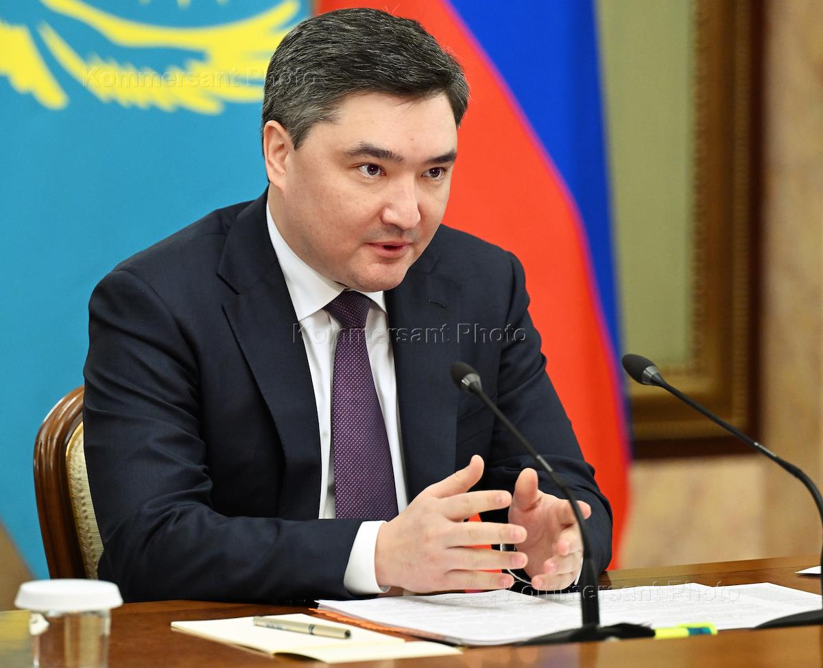 Премьер-министр Казахстана Олжас Бектенов во время встречи с председателем правительства России Михаилом Мишустиным в Доме правительства России.