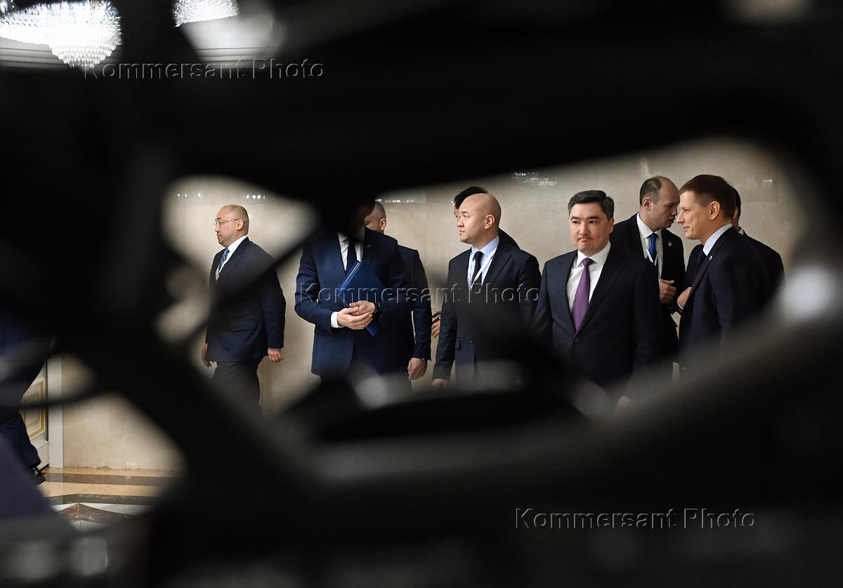 Премьер-министр Казахстана Олжас Бектенов во время встречи с председателем правительства России Михаилом Мишустиным в Доме правительства России.