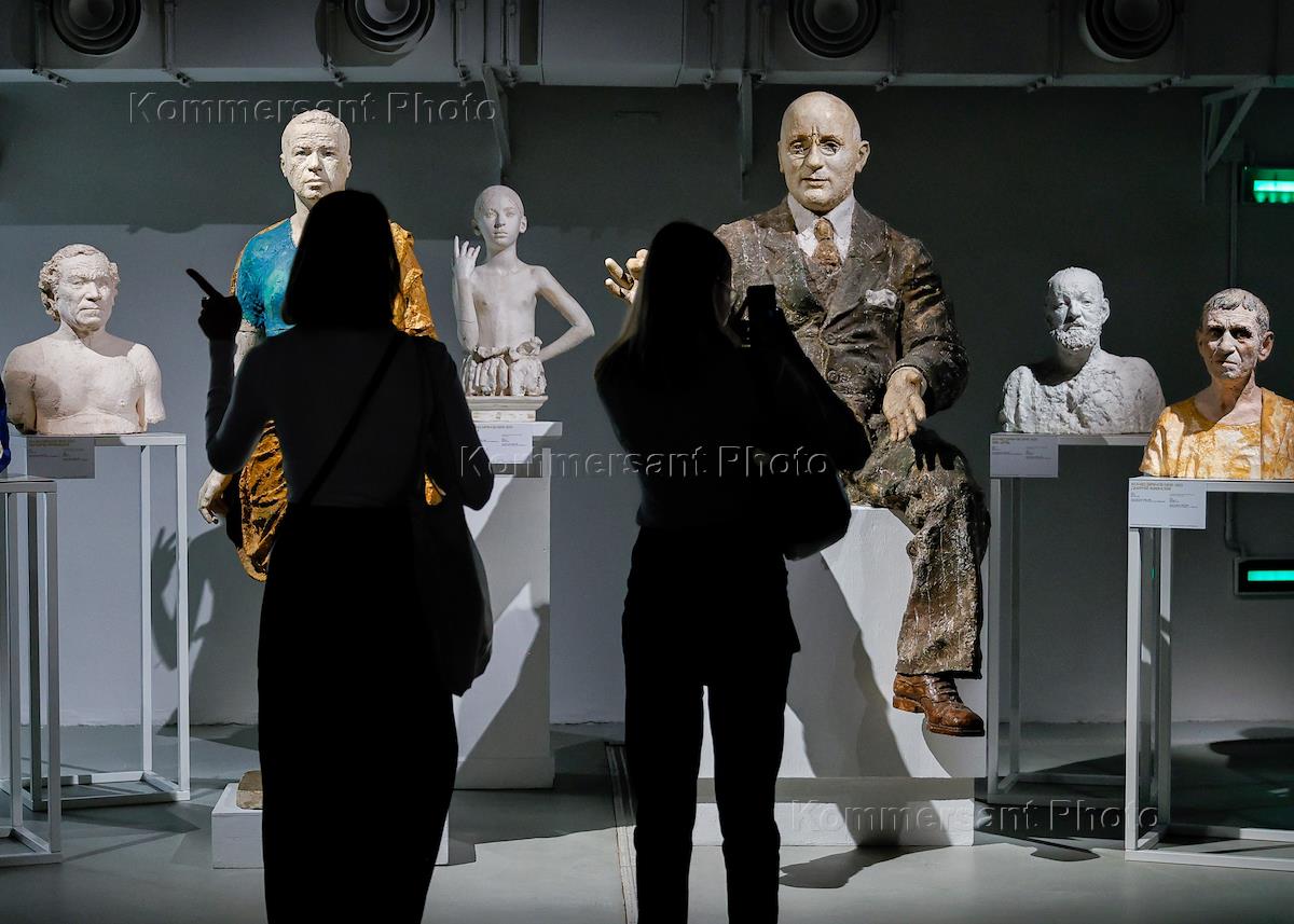 Vernissage of the exhibition "Edition. History. Surikovsky" in the Parking Gallery of Zaryadye Park. Visitors at the vernissage.